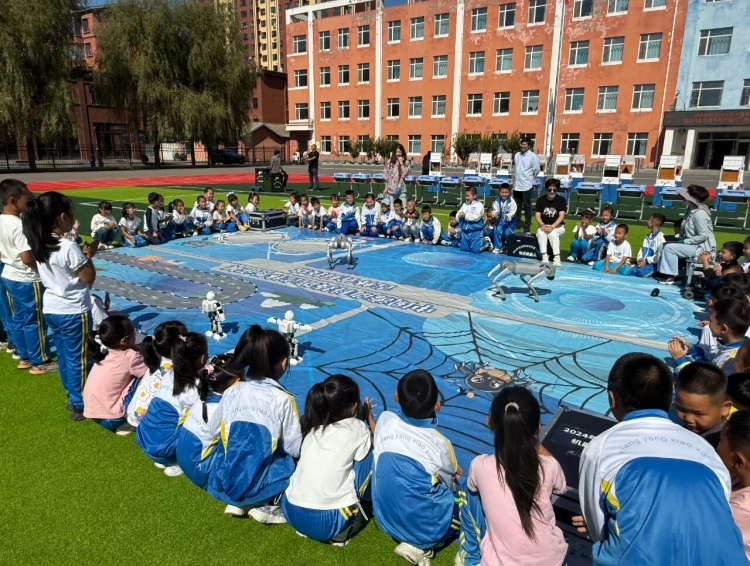 機(jī)器人展示區(qū)是全場(chǎng)亮點(diǎn),兩只機(jī)器狗靈活移動(dòng),不僅能完成抬手抬腳的動(dòng)作,甚至還會(huì)表演后空翻高難度動(dòng)作。機(jī)器人隨音樂跳動(dòng),做出各種各樣的動(dòng)作,現(xiàn)場(chǎng)不時(shí)傳來同學(xué)們的陣陣驚呼與贊嘆。